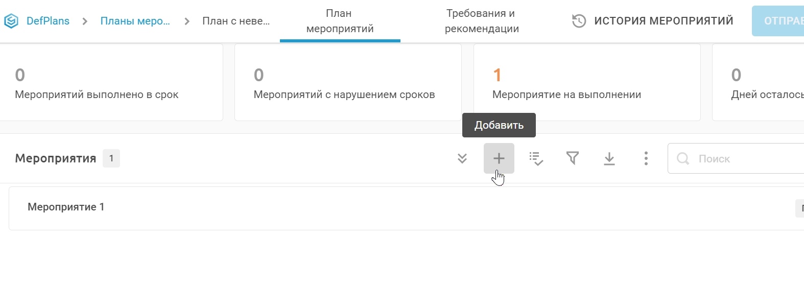 Чтобы добавить мероприятие в план мероприятий: